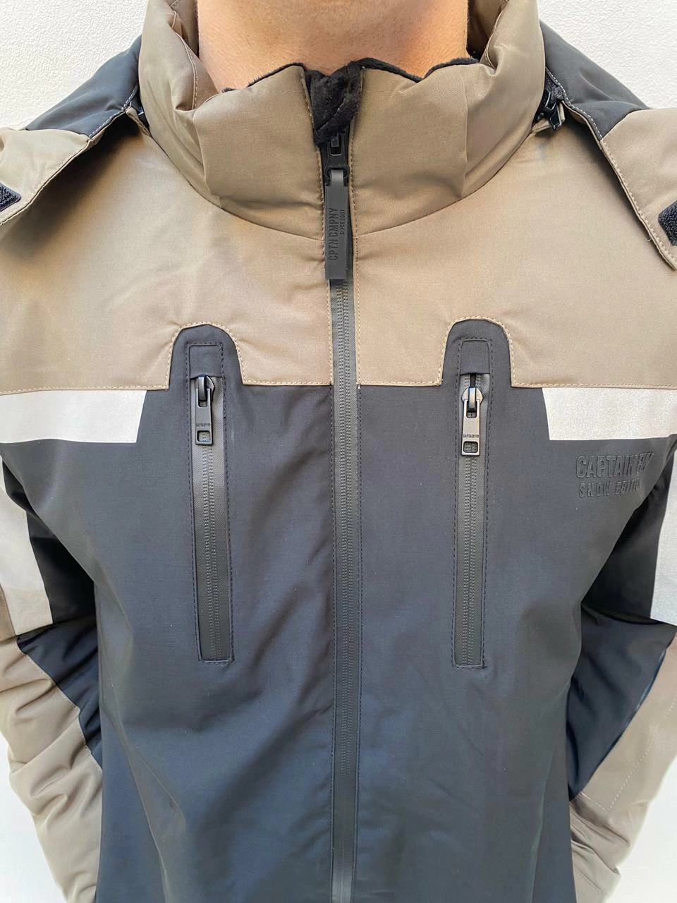 Campera técnica de nieve con capucha ajustable con cordón elástico y tanca, cierre waterproof doble vía, bolsillos delanteros con cierre waterproof, tira cierres de silicona personalizados, interior con tela térmica, trampa de nieve y bolsillos interiores, bolsillo en manga para pase, puños ajustables con velcro y trampa con apertura para pulgar. Apertura de ventilación en ambas mangas. Estampa en silicona 3D en delantero y transfer con estampa 3D en espalda. Avíos personalizados. Composición: 100% poliéster.