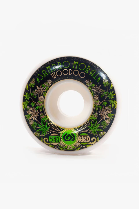 Las ruedas promodel Sandro Moral "777" Pack están coladas con uretano de alta resiliencia (SHR) y tienen una dureza de 100 shore A en su medida de 54mm de diámetro x 36mm de ancho. Una rueda todo terreno de excelente relación precio-calidad con el sello distinguido de pro Skater Sandro Moral.